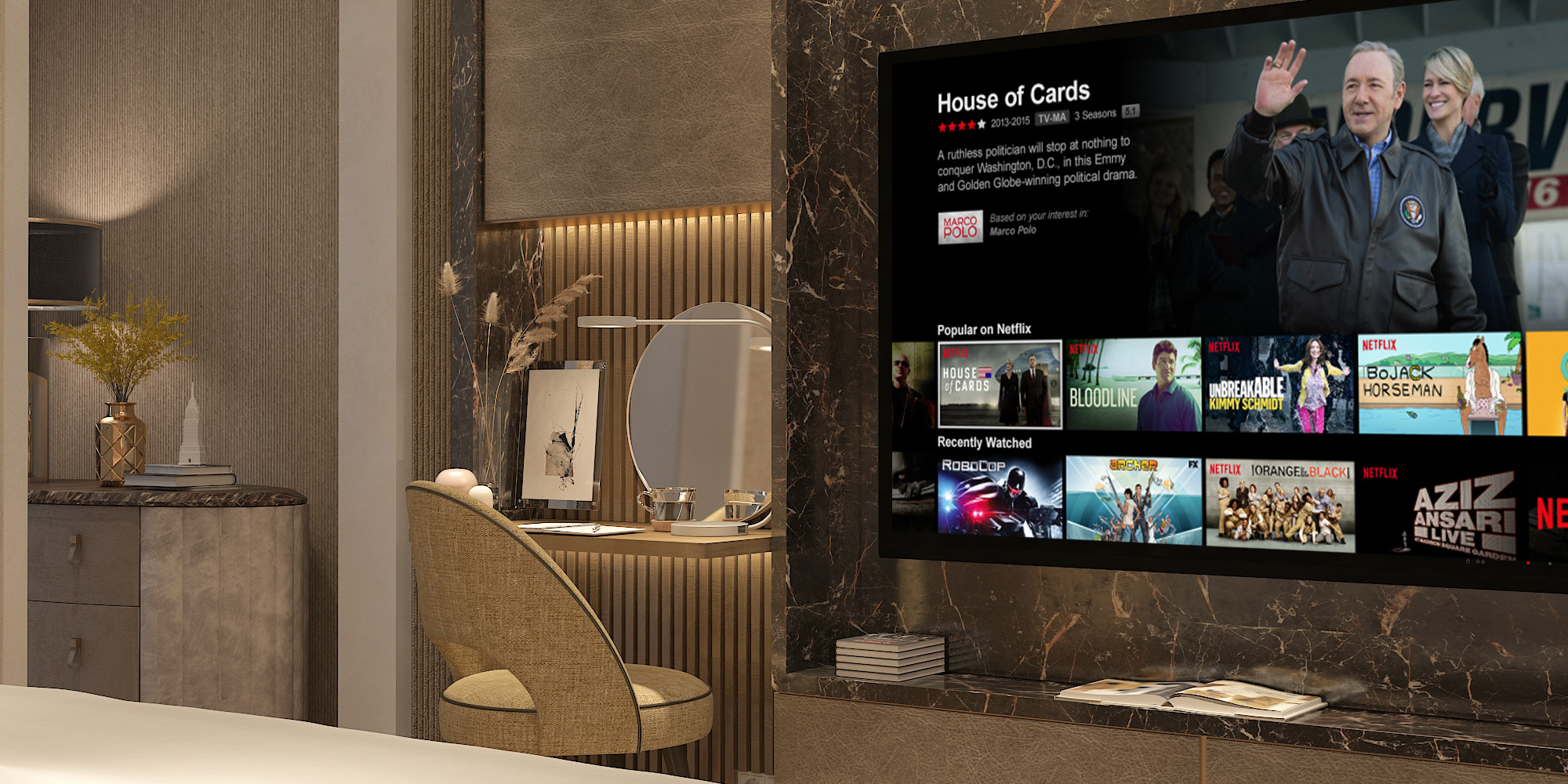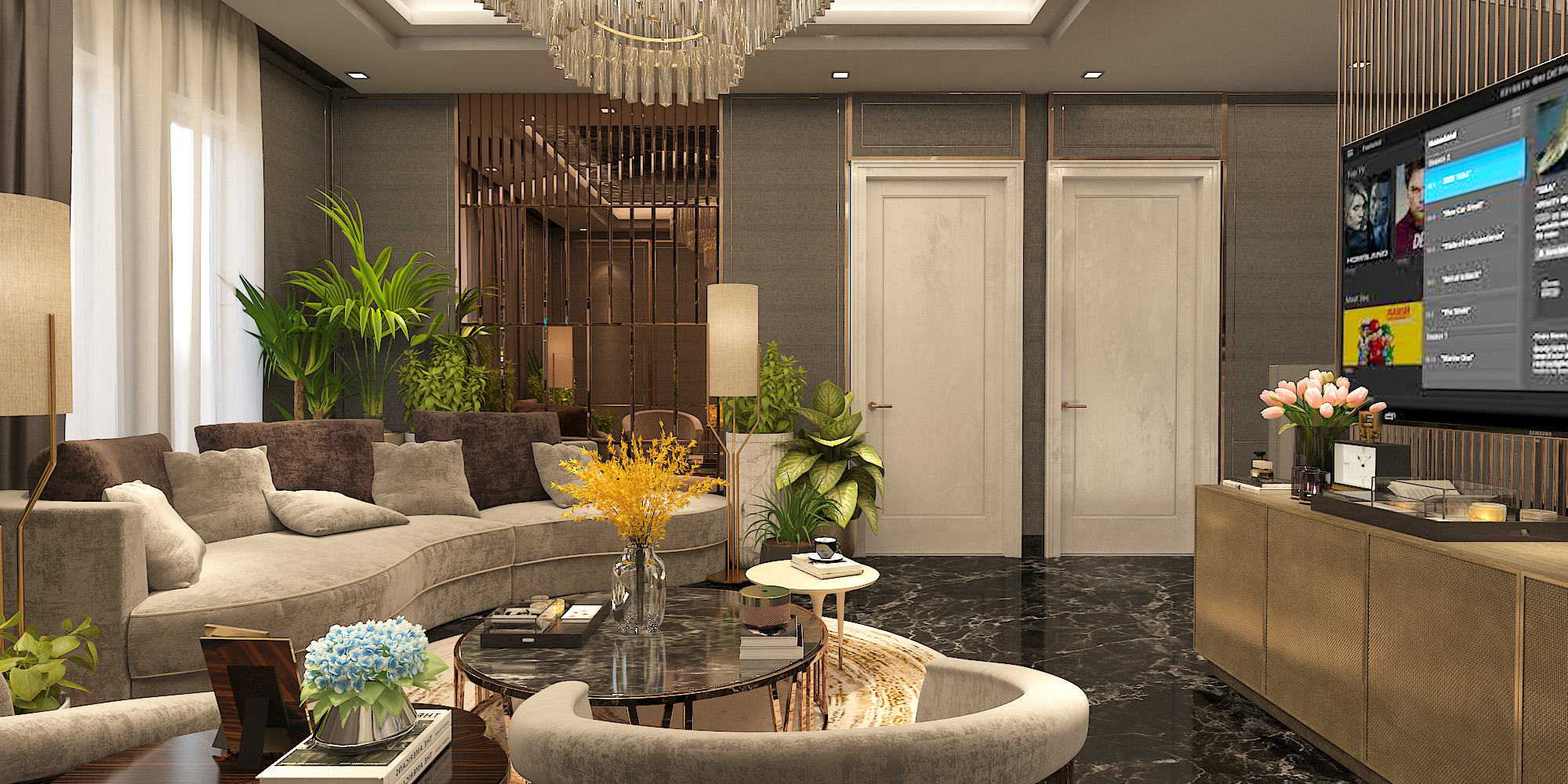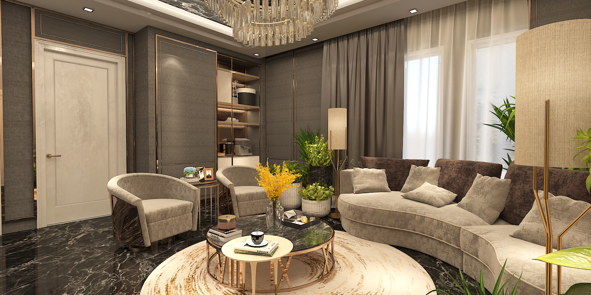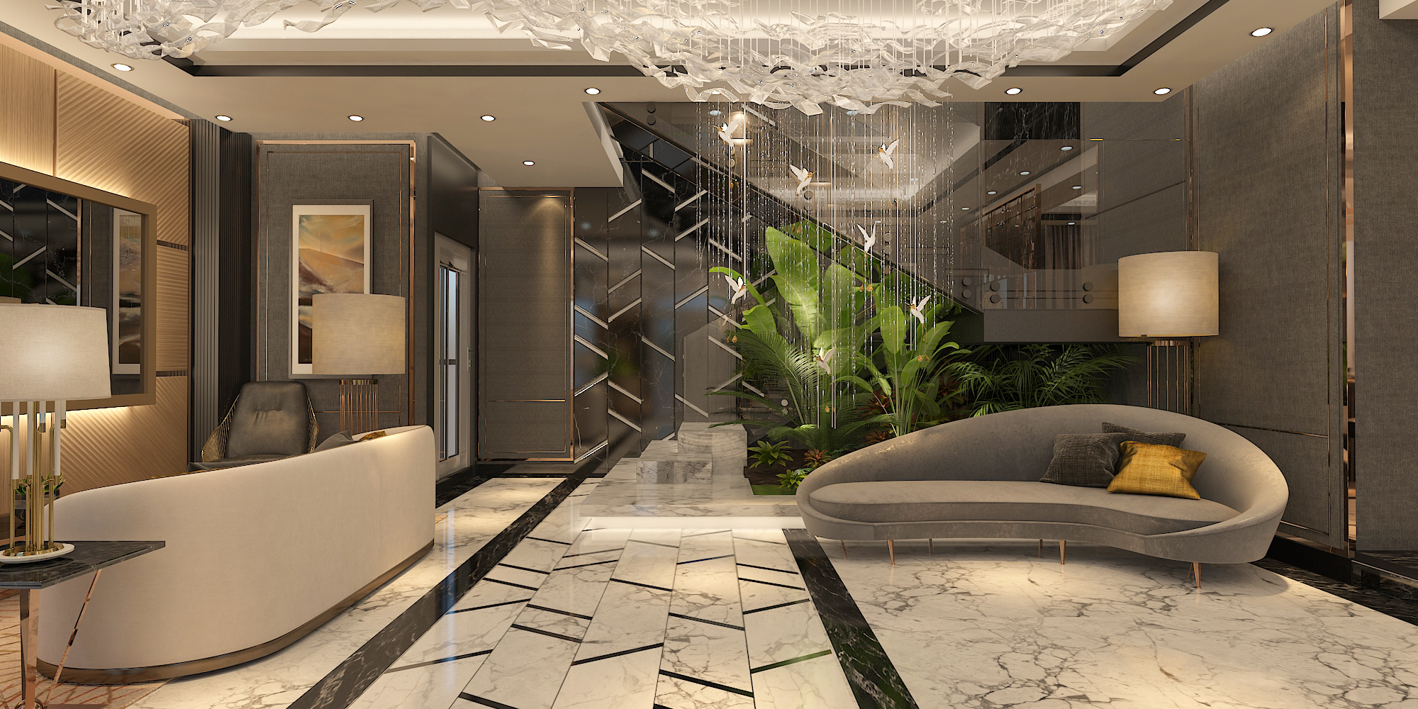 The aim of the design team was to enhance the contemporary, bold aesthetic of the architecture with a complimentary interior scheme, incorporating materials and furnishings selected for their combined strengths of sculptural form and luxurious comfort .